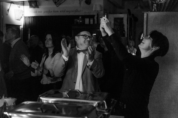 Bereits nach dem zweiten Song standen alle Gäste, klatschten, tanzten und lachten begeistert - Was für eine grandiose Stimmung im Weinladen mit Mehrwert in Stuttgart.