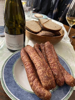 Der Kontakt zu unseren Winzerfreunden, die ihre Weine handwerklich herstellen ist uns wichtig. Wir besuchen sie regelmäßig. Dabei erfahren wir immer viel Neues und freuen uns, wenn wir so herzlich empfangen werden wie bei Jochen Ratzenberger in seiner 'Guten Stube' mit Kachelofen, Winzersekt und seinen Rieslingen aus verschieden Jahrgängen sowie Spezialitäten der Region begrüßt hat. Wir waren die ersten, die seinen in Spätburgundertrester eingelegten Käse probieren durften! Eine Gaumenfreude vom Allerfeinsten, natürlich mit Riesling ;-)